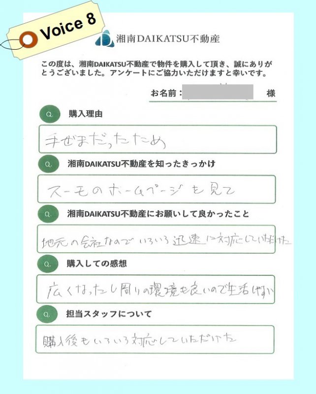 voice⑧ 中古マンションをご購入されたW様より