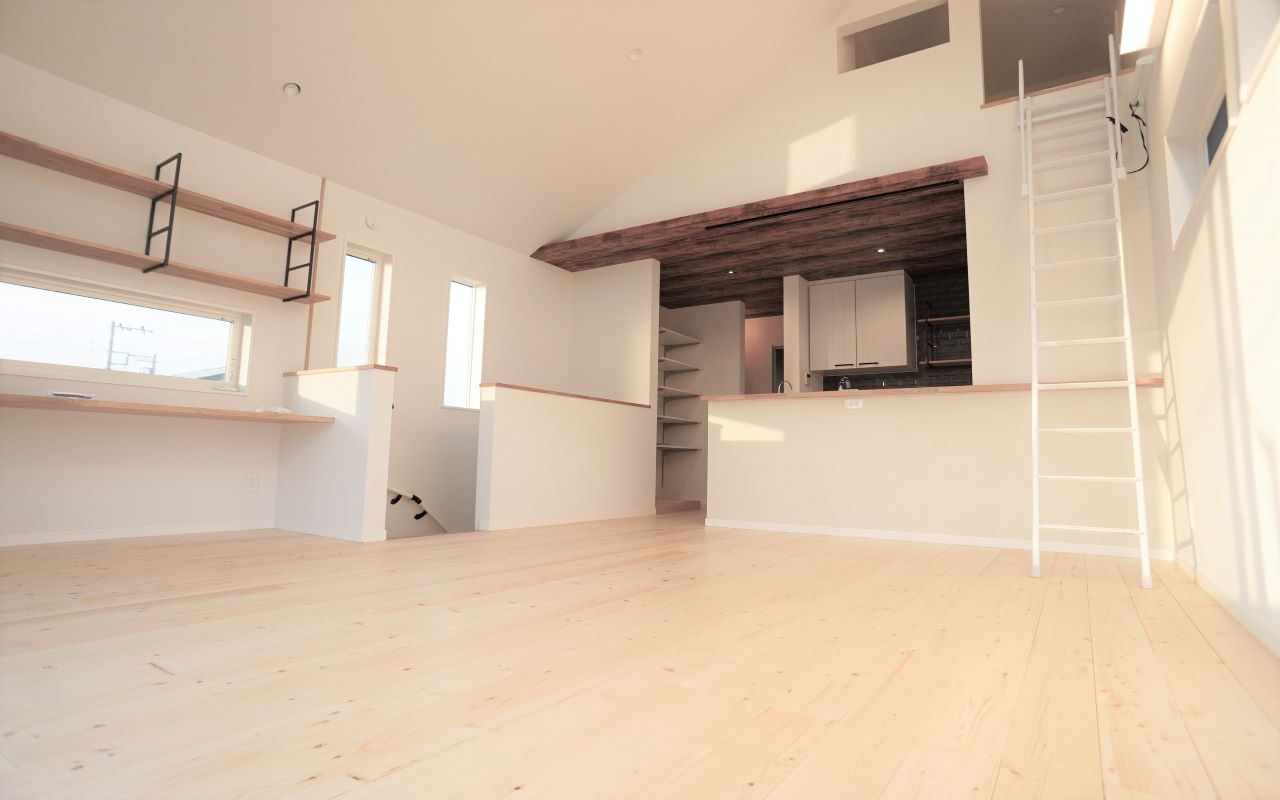 勾配天井と秘密基地のようなロフトのある2階リビング
