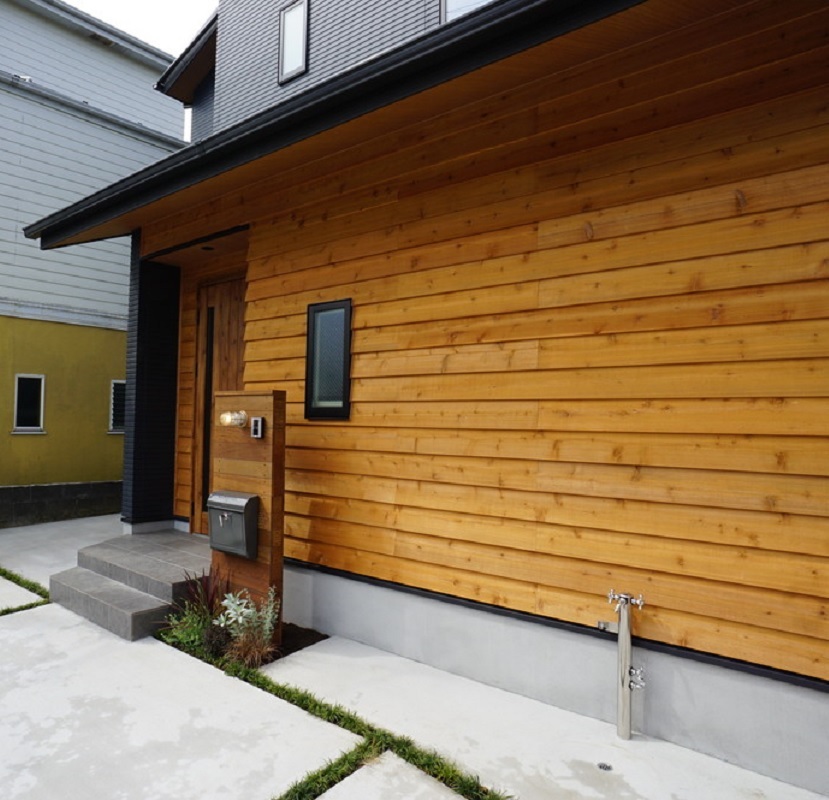 温もり溢れる木の外壁に目を惹かれるH邸。