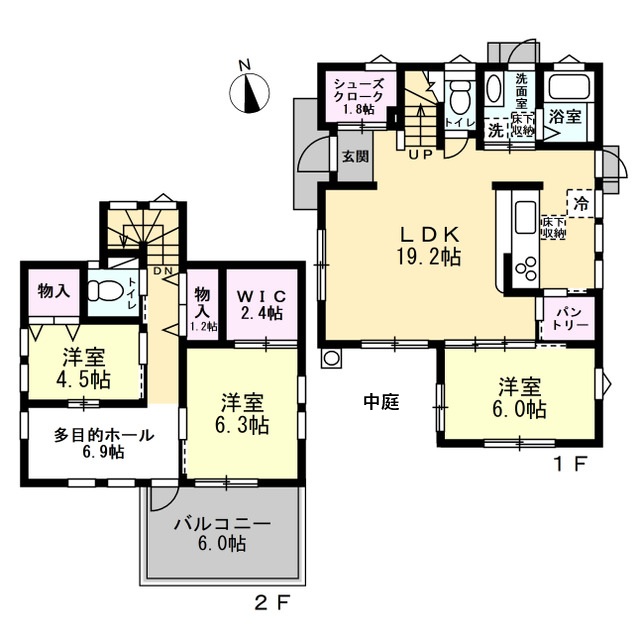 | 間取り | 3LDK+WIC+SIC+多目的ホール | 間取り内訳 | 洋室6.3 6.0 4.5 LDK19.0 |