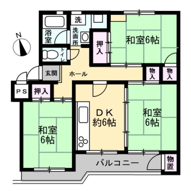 | 間取り | 3DK | 間取内訳 | 和室6.0×3 DK6.0 |