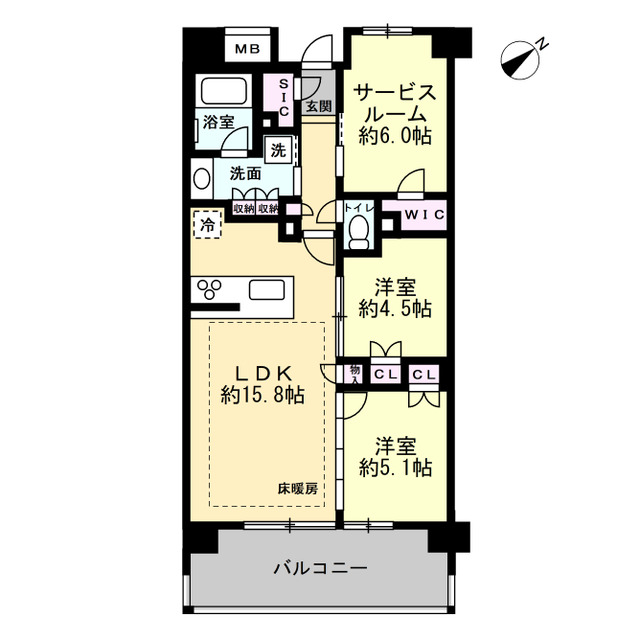 | 間取り | 2SLDK+WIC | 間取内訳 | 洋室6.0 4.5 S6.0 LDK15.8 |