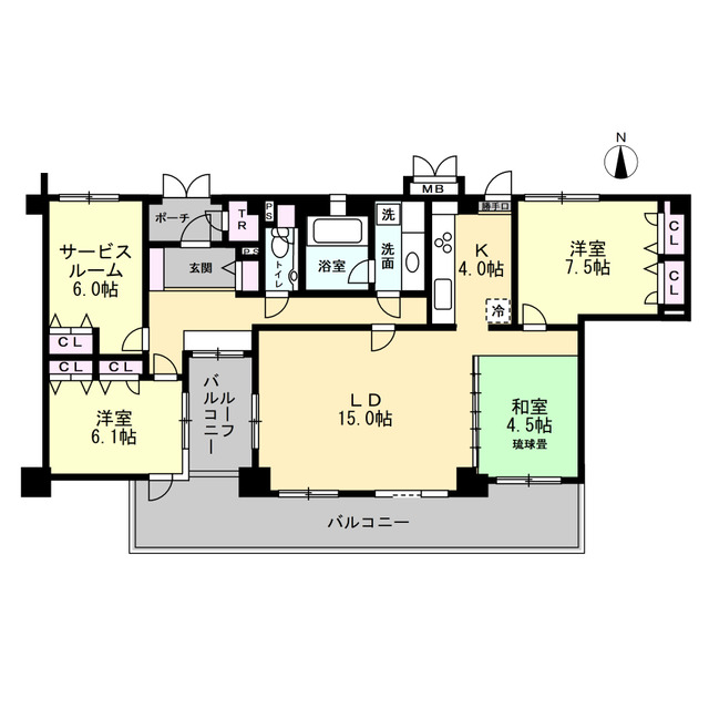 | 間取り | 3SLDK | 間取内訳 | 洋室7.5 6.1 和室4.5 S6.0 LD15.0 K4.0 |