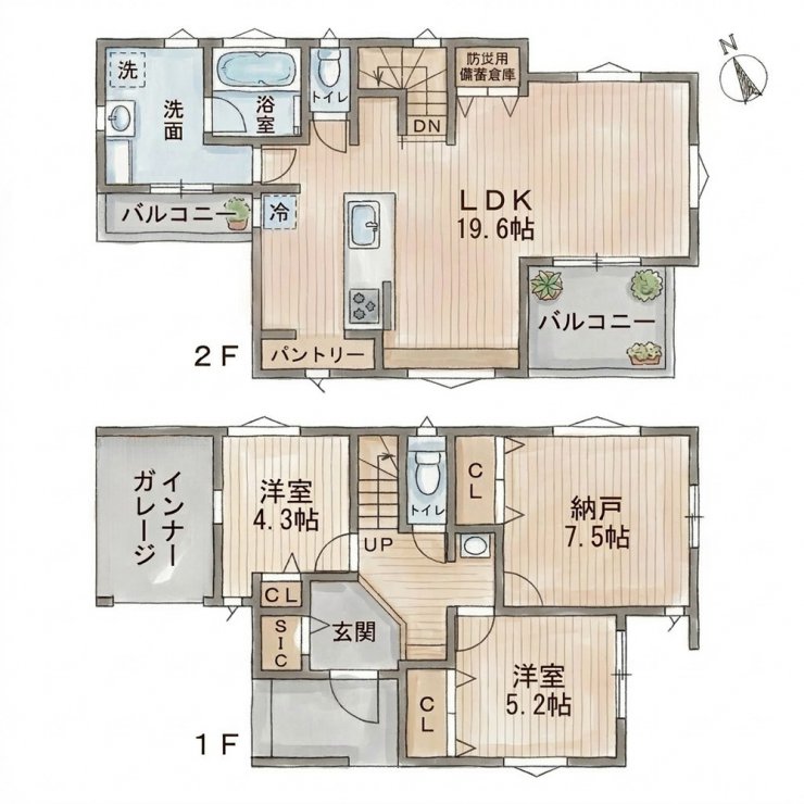 | 間取り | 2SLDK | 間取り内訳 | 洋室5.2 4.3 S7.5 LDK19.6 |