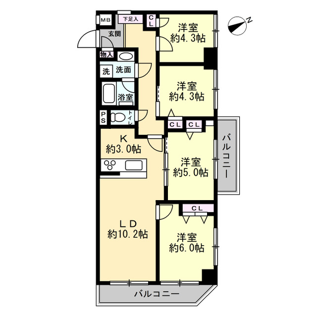 | 間取り | 4LDK | 間取内訳 | 洋室6.0 5.0 4.3×2 LD10.2 K3.0 |