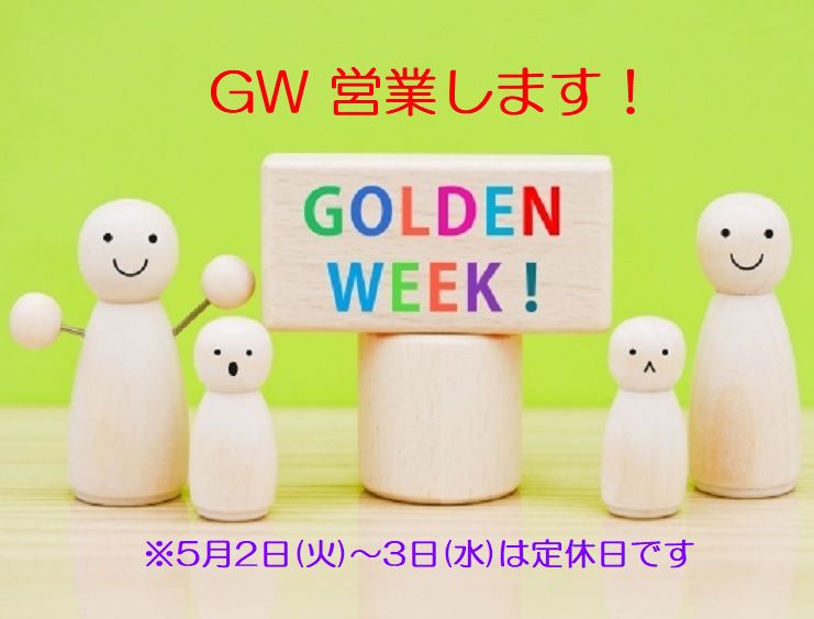 GW営業いたします!(5月2日(火)~3日(水)は定休日)